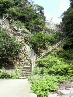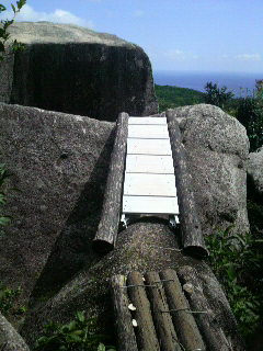 メインイベーント!! まずは、直江の気分で階段を駆け下ります。 きっと、高耶さんの気配を感じて、駆け下りてきたに違いないんだ。 (24巻148P) ついに… 白山洞門 キター!! すごっ! すごいよ! 自然って! そして、 高耶さんが背中を張りつけたのはあそこかなー? 直江が吹っ飛ばされたのはあそこかなー? としばし浸る。 浜の方。 逃げようとして、念で足を縛られちゃうわけですね。 そんでもって。 ……。 降りてきた時はうきうきだったんですが。 改めて見るとスゴイ。 他の方のツアレポを見て、「これなら…万全の体制で行けばなんとか…ならないかな」なんて思ったこともありましたが。 これ、写真の先にもまだまだまだまだ道が続いているんですよっ! おぉおおw ま、それはさておき。 ここまで来たんだから、 やるっきゃない。 い、行きますよー よーい、 スタート! ……っ (言葉にならない) 無理、です。 ごめんなさい。 1/3ほどのところでギブアップw 後は歩いて足摺岬に向かいます。 どうなってるんだ、あの二人の体力はw 展望台です! 追い詰める直江の気分で、ここから力を振り絞って駆け上がりました。 あと少し! 高耶さん! 「それ以上、上がってくるな!」 人が居なくなったのをいいことに、24巻を読み出す私。 はぁあ~ 高耶さん、本当に無事でよかった。 それにしてもいい眺めです。 あそこに見えるは、足摺アジトかしらん? 走り疲れましたw お、お腹空いたw お昼ごはん分のエネルギーは使い果たしたみたいですw アイスクリンを食べながら、足摺岬の周辺地図を見ます。 次は例のあそこに行こうと思っているんだけど、地図に載ってないのよね~。 カーナビでも出ないし… 原作は24巻しか持ってきていないし… 食べながら、記憶を探ります。 うん、きっと大丈夫。 食べ終わったら出発だ! アイスクリンは、なんだかアイスとカキ氷の中間のような食感でした。 これからの無事を、目の前の白山神社にお祈りして、出発です。 それにしても。 洞門の上にも白山神社ってあります? すごい参道がありましたが… 次回は登りたい。 (自殺行為w) 旅の無事もお祈りしましたし、さあ、唐人駄馬へ! 「足摺スカイラインをこれでもかと進んだところ」というツアレポがあったよな、と記憶を辿り、足摺スカイラインへ。 走ります。 走ります。 だいぶ走ります。 見落としたんじゃないか、看板なんてないんじゃないかと不安になりつつ。 あった! 足摺岬の方から足摺スカイラインに乗られる場合、左手に看板が見えます。 そしてさらにここからだいぶ、車で走ります。 ナビは道なきところをぐるぐる。 大丈夫、だいぶクネクネしてるけど一本道だから! 看板と地図です。 よし! 唐人駄馬到着! こんな鬱蒼としたところに入っていって大丈夫か… と思いましたが、噂の石はすぐそこです! 入ってすぐの看板を左折。 登れといわんばかりのはしごたち。 …きのこ、生えてますけど?w 最後の難関! やはりきのこ付き。 おそるおそる。 うん、腐ったりしてない。 しっかりしていたけど、メンテナンスはしているんだろうか。 いーい眺めー! しかし高いところ苦手な人(私)にはちとつらい。 しかも一人だしw ちょっとがくがくしつつ、少しだけ景色を楽しみます。 風、吹くんじゃない! 登る時より下る方が大変な思いをしつつ、辿り着けたことに感謝。 帰りに車とすれ違ったことにびっくりしつつ、宿毛に向かいます。 途中、足摺海底館をチラ見し、 ここは国道。 国道のはず…。 国道27号から321号へ変わっても相変わらずです。 のどか~ もっと時間が欲しい。 帰りの無事もお祈りしましょう。 そうしましょう。 ひとまず、行きよりは道は広いかも? 他にも色々寄りたいところはありますが、調査不足とレンタカーの返却時間、 なにより街燈がないので、早々に街に出ます。 おっと宿毛に出たからにはこれは忘れてはいけませんよ。 宿毛アジト★ これもスゴイとこにあったな~ 2日目はこれにて終了。 レンタカーを返却し、宇和島に出ます。 窪川にて乗換。 窪川も…また… それにしても電車が貸切状態だったんですが、大丈夫ですか…そうですか… 宇和島ではにゃんこが迎えてくれました♪